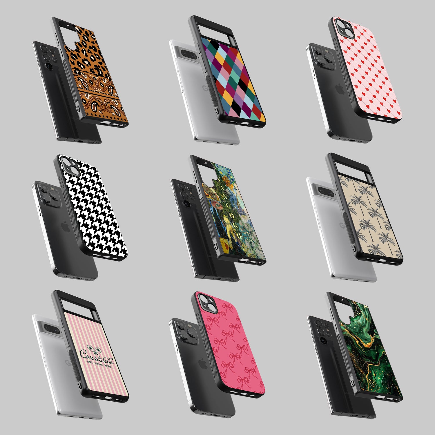 Premium Glass Cases available for Apple, Oneplus, Samsung, Pixel, Xiaomi, Oppo, Vivo, Realme & More Devices.