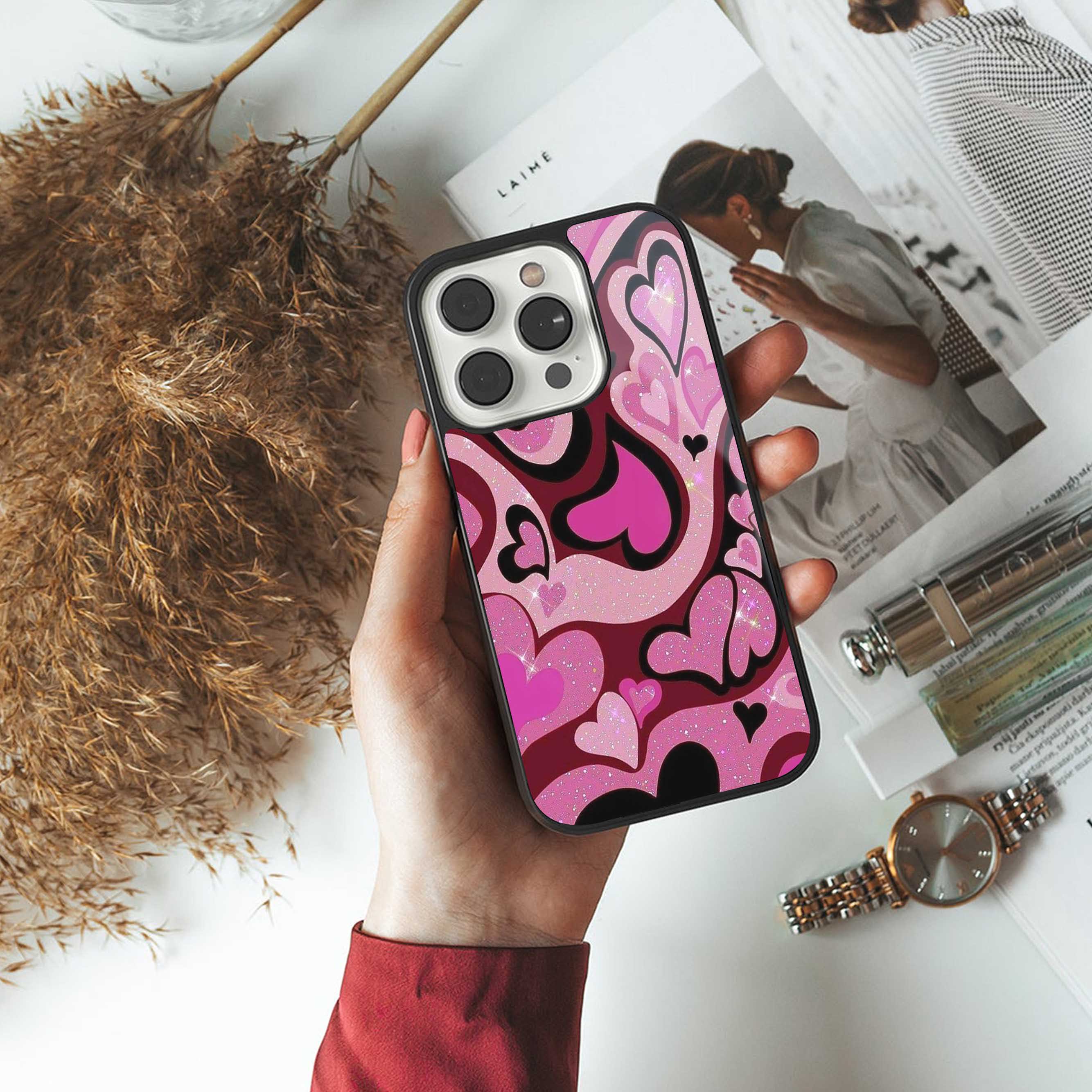 Y2K Magenta Meltdown Hearts Phone Case for Iphone 15 Pro | Glass Case